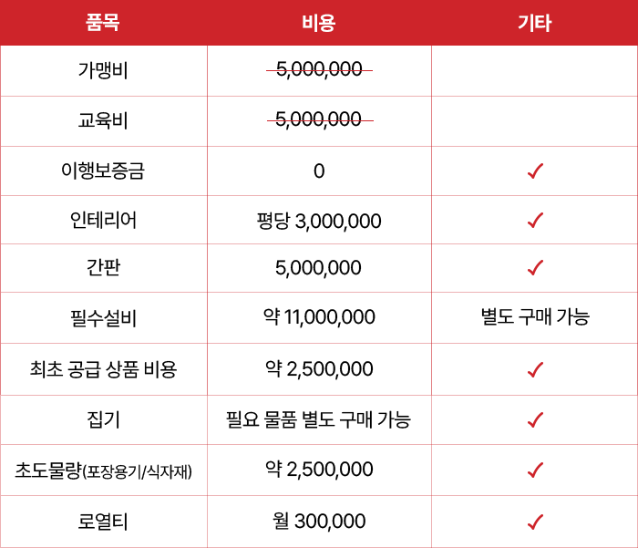 단 점주님의 운영 방식에 따라 인건비가 발생될 수 있습니다.